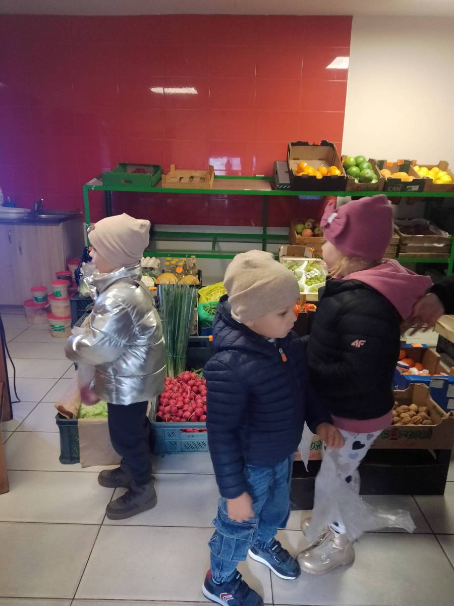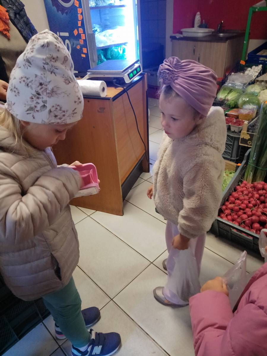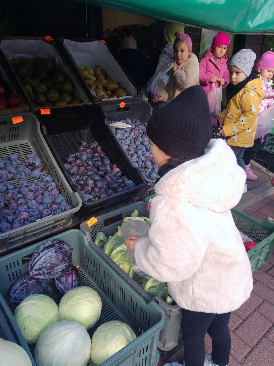 Przedszkolaki uczyły się robić zakupy owocowo-warzywne oraz utrwaliły sobie zasady kulturalnego zachowania się w miejscu publicznym.