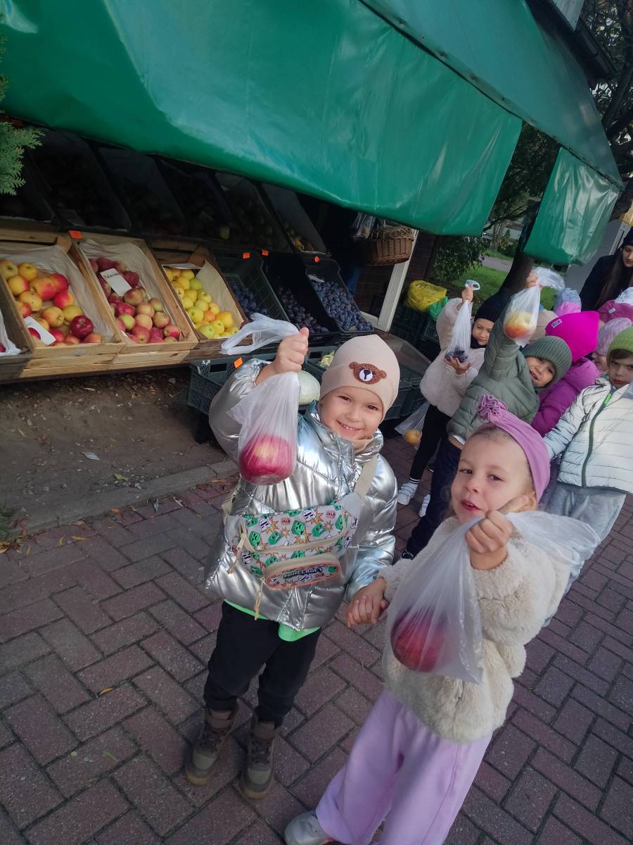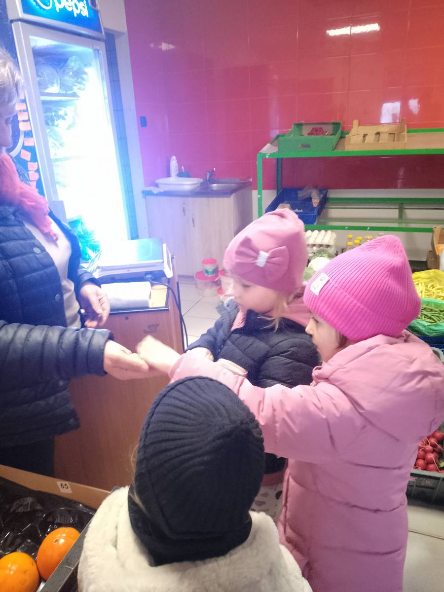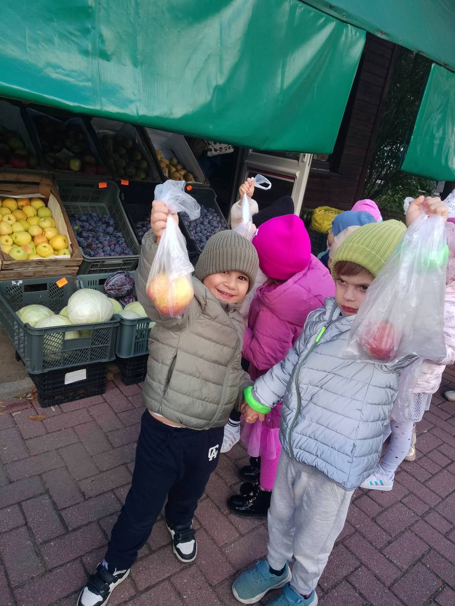 Przedszkolaki uczyły się robić zakupy owocowo-warzywne oraz utrwaliły sobie zasady kulturalnego zachowania się w miejscu publicznym.