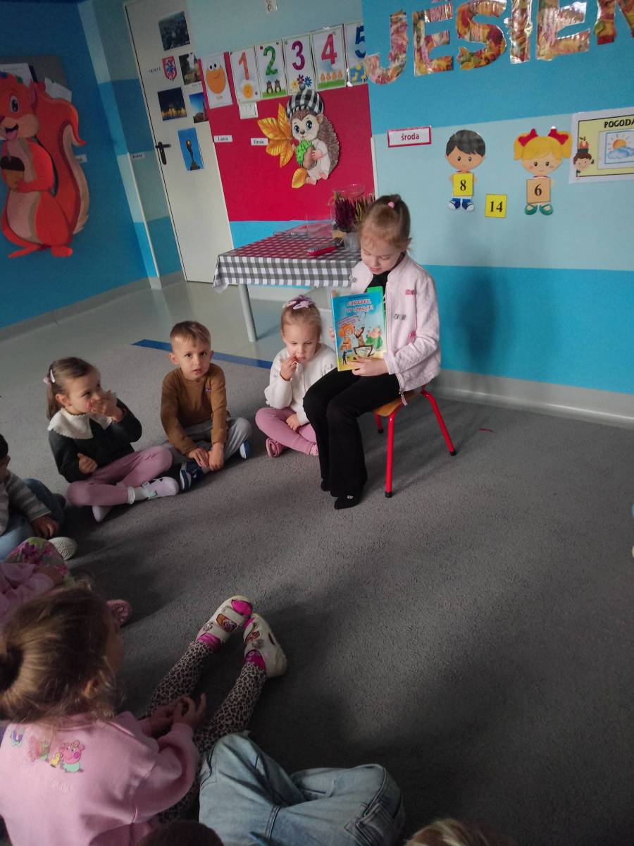 Grupa Kosmos gościła absolwentkę naszego Przedszkola- Lucynkę, która w ramach akcji Cała Polska czyta dzieciom przeczytała fragment lektury z I klasy. Serdecznie dziękujemy Lucynce za odwagę i zaprezentowanie swoich umiejętności czytelniczych, jednocześnie życzymy dalszych sukcesów w szkole!